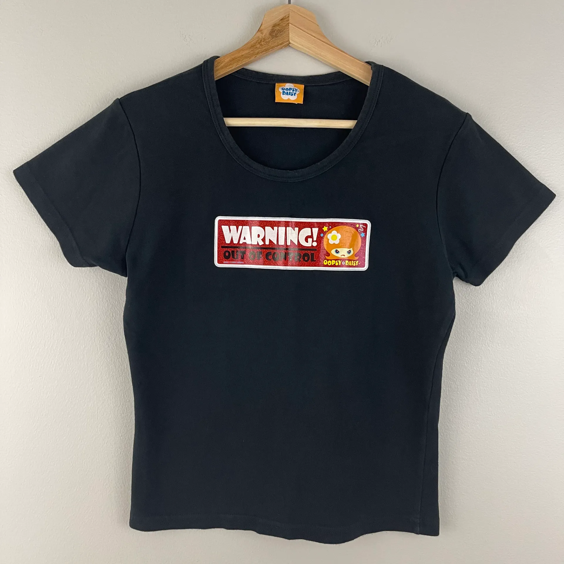 Vintage, hard to find, Oopsy Daisy graphic tee by Cosmic Debris. In excellent vintage condition. Made in 2001. Basic black tee with glitter transfer graphic on front. “WARNING! OUT OF CONTROL”. Britney Spears seen wearing an Oopsy Daisy top. Sz XL but fits smaller (refer to measurements). Armpit to armpit: 18.5” Length: 21.5” Oopsy Daisy was created by Brian Brooks for Rob Reger’s Cosmic Debris Etc., Inc. during the summer of 1999 while working as the Emily The Strange designer. In the early 2000 the first tee-shirts with Oopsy Daisy glitter transfers began appearing in boutique shops across the US, and she soon made the jump into mall stores (Pac-Sun, Zumiez, Spencer’s, Claires) and a few years later into big-box shops (Sears, Target). 1993-B