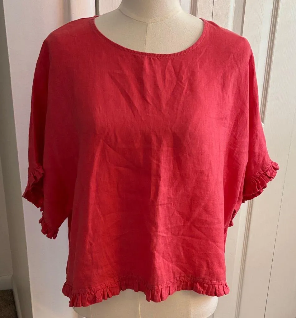 Brighten your look with this Cynthia Rowley blouse. Features playful ruffle trim on sleeves and hem.... Show more