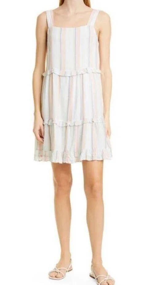 RAILS Sandy Linen Blend Shift Dress Size: Small (4/6) Color: Pastel Multi Strip NEW WITH TAGS ATTACHED Pastel stripes and tiered construction make this shift dress an airy favorite. Square neck Sleeveless Lined 55% linen, 45% rayon Hand wash, line dry Imported