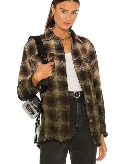NEW With Tag Free People We The Free Navy Tobacco Combo Ombre Plaid Anneli Button Down Shacket Top s... Show more