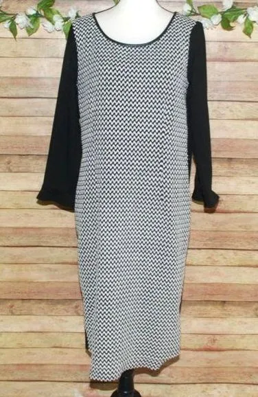 Max Mara Penny Black Midi Shift Dress Black White Size 14 Career Classic Long Sleeve FLAWED - Seamst... Show more