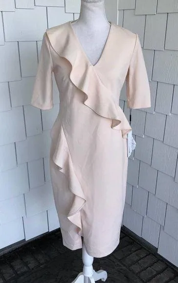 Calvin Klein V-Neck Ruffled Cocktail Dress Color: pink Half Sleeve Back zip closure Knee length R... Show more
