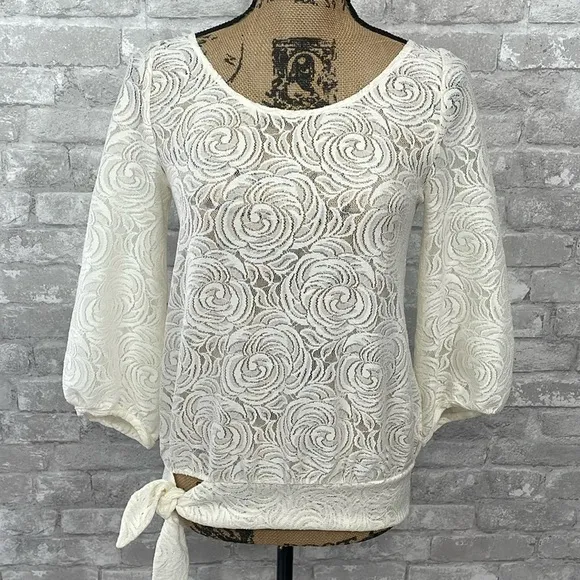 Deletta floral lace tie top Self tie side tie Floral lace print Semi sheer lace Elastic cuff