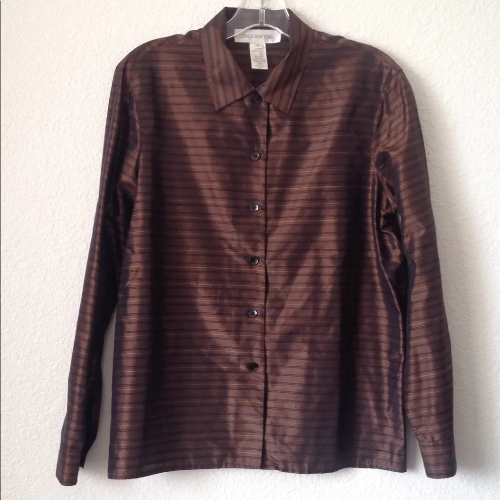 Here's a Ladies' Jones New York Long Sleeves 100% Silk Blouse, Size: 6. Made in China of 100% silk... Show more