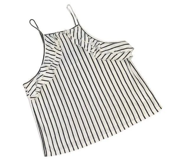 Soft and comfortable striped black and white top! Ruffle detail! From American Eagle Outfitters. Goo... Show more