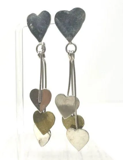 Genuine Sterling silver triple heart dangle post vintage earrings. Middle hearts are golf gold tone... Show more
