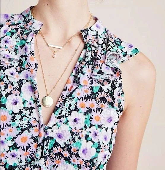 Anthropologie Size small Chalmers top in a purple floral print. Ruffle detail at the top front and... Show more