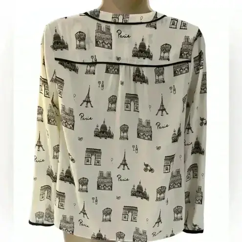 Talbots Paris Print Tie-Front Blouse in Ivory and Black, size Small Petite. This flowy and feminine... Show more