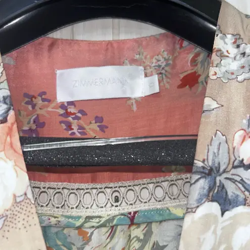 Beautiful zimmermann patchwork dress Vintage floral print in coral tan and aqua Asymmetrical hem V... Show more