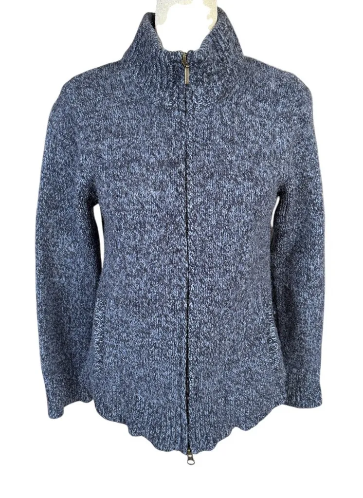 Women's L.L. Bean blue knitted lambswool long sleeve high collar zip up sweater jacket, size S PET (... Show more
