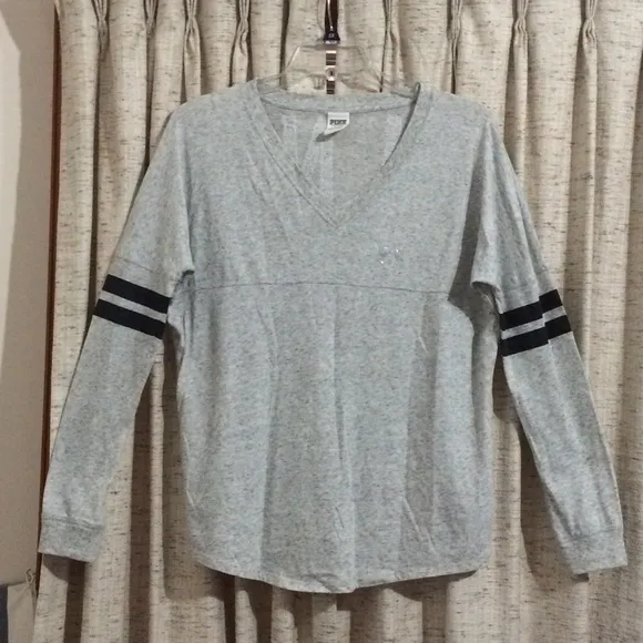 Brand: PINK Victoria's Secret, Size: Medium, Color: Grey Heather, V-neckline, Long sleeve with black... Show more
