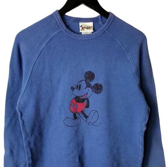 Vintage Walt Disney World Mickey Mouse Shirt Blue Medium M Thermal Graphic Cotton Long Sleeve Solid... Show more