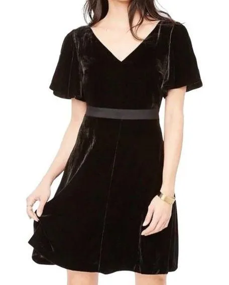 Ann Taylor Petites Velvet V-neck Flutter Short Sleeve A Line Dress Black Size 12P This elegant Ann... Show more