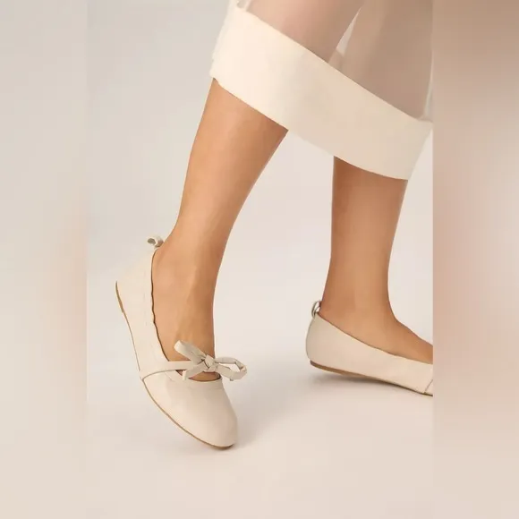 A bow detail adds a gorgeous, feminine flare to this classic ballet flat. Leather upper Cushioned footbed Rubber sole Size Chart in Photos US 9.5/10 (Personally I think this leans more towards 9/9.5) These are brand new with stickers, I bought from Anthropologie but I threw out the box because I was sure I’d keep. Just never worn…time to pass onto someone who’ll love them!