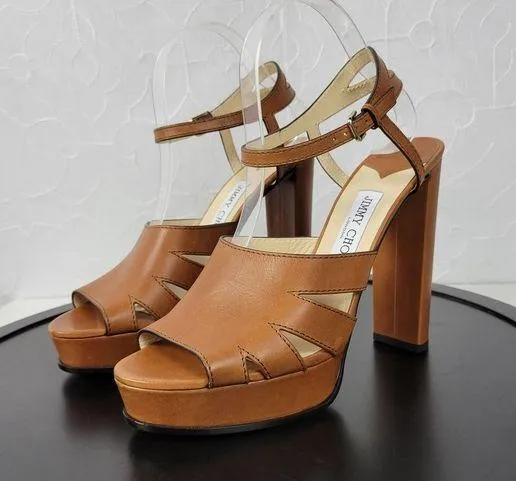 Jimmy Choo Hermione Platform Women Sandals Size 41 US11 Tan Leather Open Toe NEW Product Description... Show more
