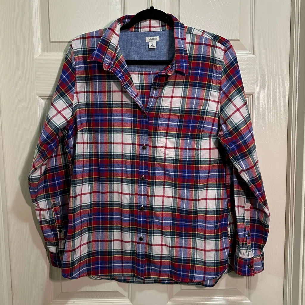 L.L. Bean button down flannel shirt. Long sleeve with button closure at the wrists. Single pocket on... Show more