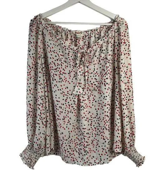 Max Studio Size L Heart Polka Dot Blouse Keyhole Tie Front Smocked Long Sleeve Good Preowned condit... Show more