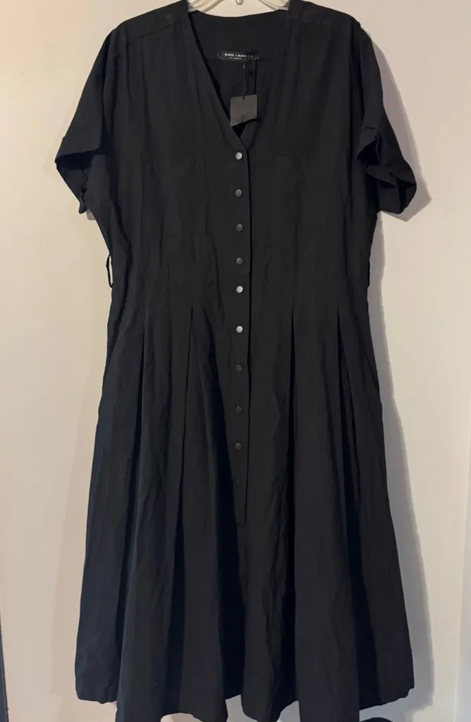 Black is Black by Alembika Short Sleeve Button Down V-Neck Maxi Dress Size 3 = US 10/12 NWT- No Flaw... Show more
