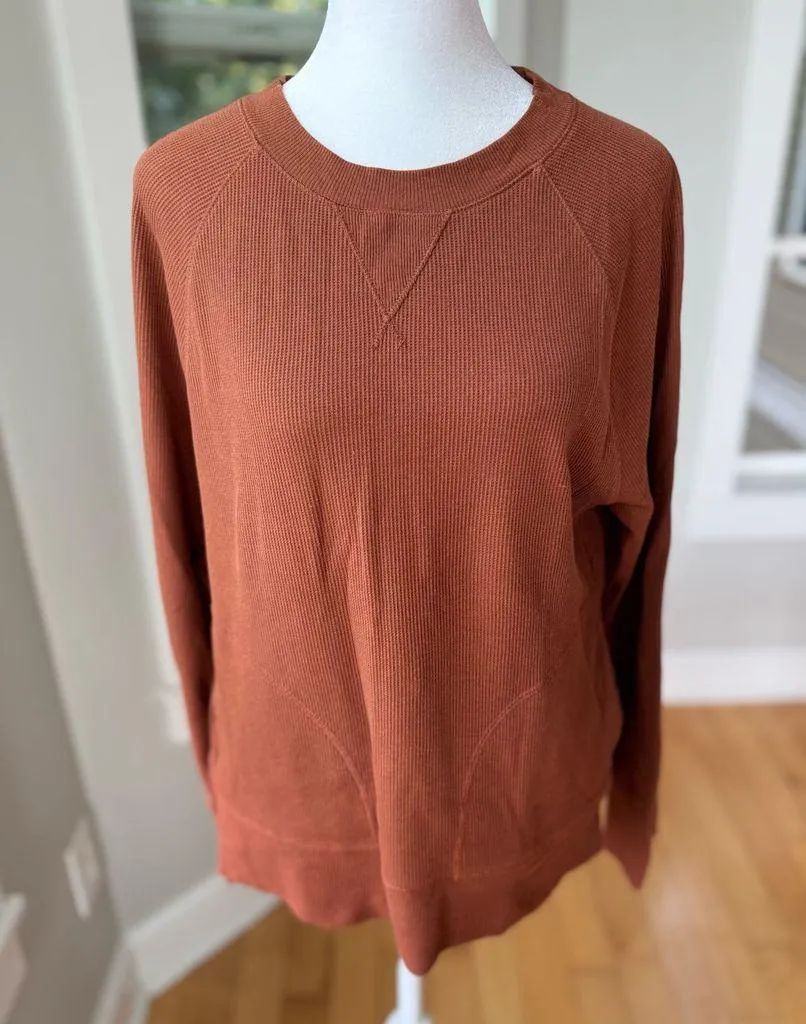 Eddie Bauer rusty red orange thermal cotton long sleeve tunic top sweatshirt. Front pockets. Excelle... Show more