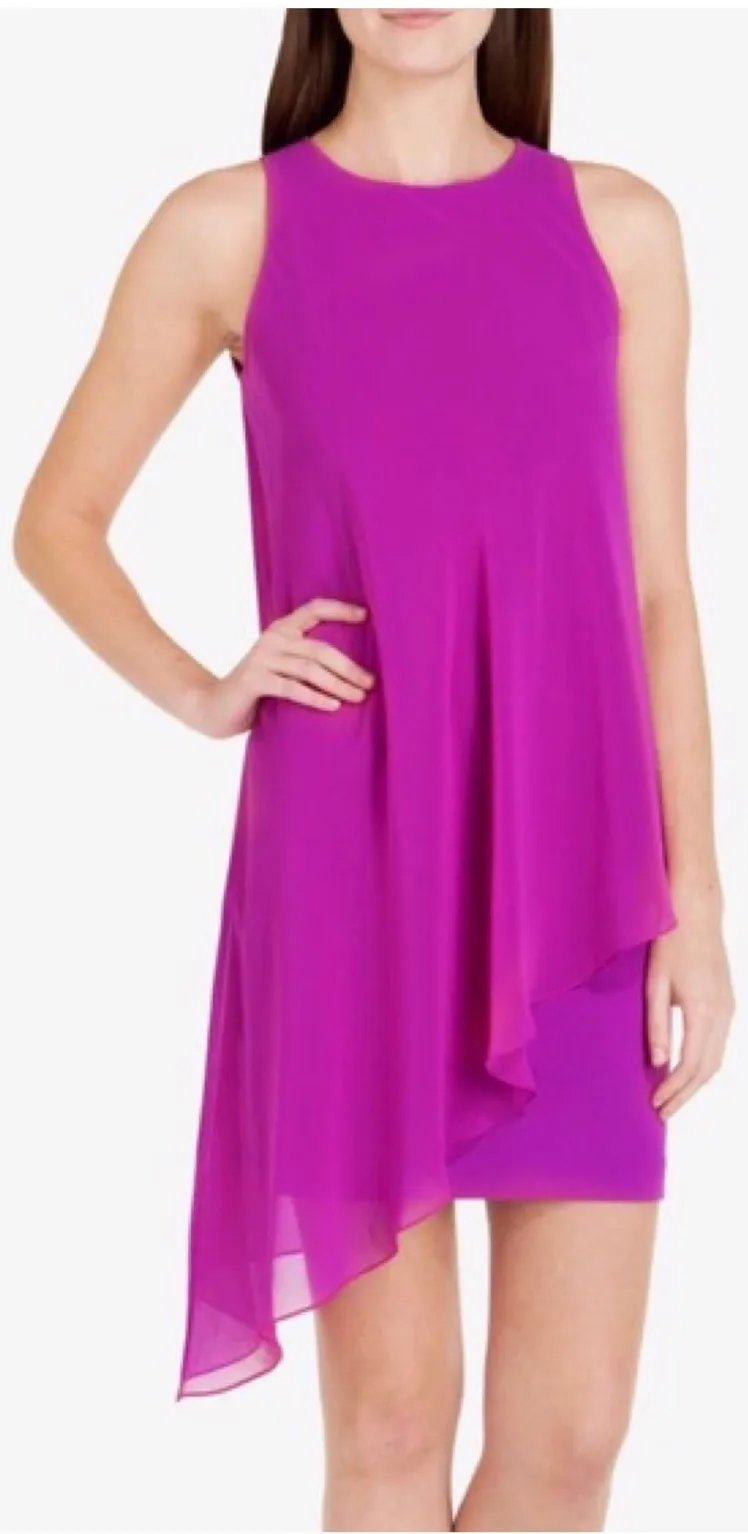 $369 Ted Baker Locie Sheer Asymmetric Overlay Stretch Mini Dress Small Pink magenta color. Chiffo... Show more