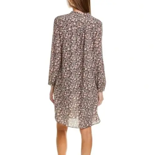 . * Brown, pink and white floral print * Button front placket * Long sleeve with button cuffs * Pockets * Pullover styling * Relaxed shift silhouette * 100% polyester * Machine wash