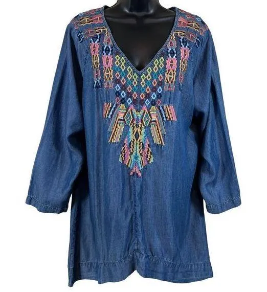 Soft Surroundings Mixteca Dark Denim Chambray Tunic Blue Size L - $47 - From Second