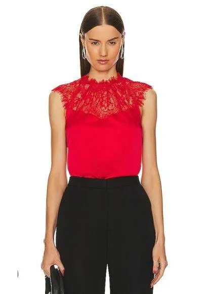 From Generation Love sold at Revolve, Bloomingdales, and Saks Fifth Avenue the Annalise Lace Combo Top Fiery Red Size XS MSRP $215 The Annalise is sheerly stunning. Created with a chic illusion neckline adorned with delicate lace, this combo top is perfect for pairing with a blazer and slacks for the office or a miniskirt and leather jacket for a night out. 95% Silk, 5% Spandex Open to offers/bundles. All orders ship next business day. Questions/ comments welcome!