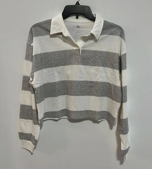 So Long Sleeve Crop Top with Collar Grey and White Striped Size Small Gray - $15 - From Elizabeth