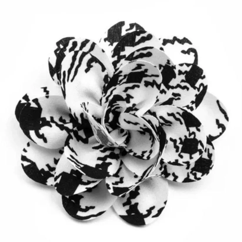 Patterned in black ink-like blots, soft white petals gather into an abstract blossom for a unique sp... Show more