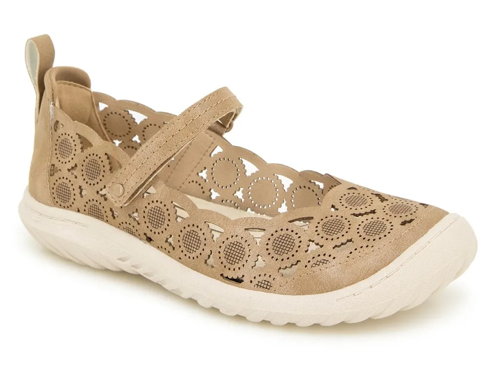 JBU by JAMBU & CO Women’s Anne Taupe Shimmer Shoes – Size 8 (New with Box) Step into comfort and style with these JBU by Jambu Anne shoes. Designed with playful circular panels of shimmering vegan faux leather and breathable perforations, they’re perfect for everyday wear with a touch of sparkle. • Vegan leather • Adjustable hook-and-loop strap for a secure fit • Memory foam insoles for all-day comfort • All Terra traction flexible rubber outsole for stability on any terrain • APMA approved • Imported Condition: New with box Size: 8 Ships same or next business day from a smoke-free, pet-free home.