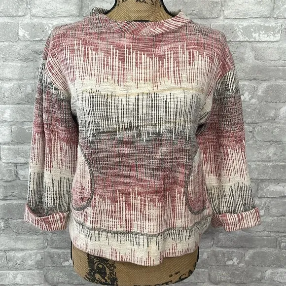 Postmark Soundwaves Textured 3/4 Sleeve Sweater 3/4 Length Sleeves Boxy, comfortable fit Pockets on... Show more