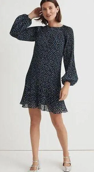 NWT Madewell Crinkle Georgette Mini Dress in Blue Floral Size X-Small XS New with tags. No flaws.... Show more