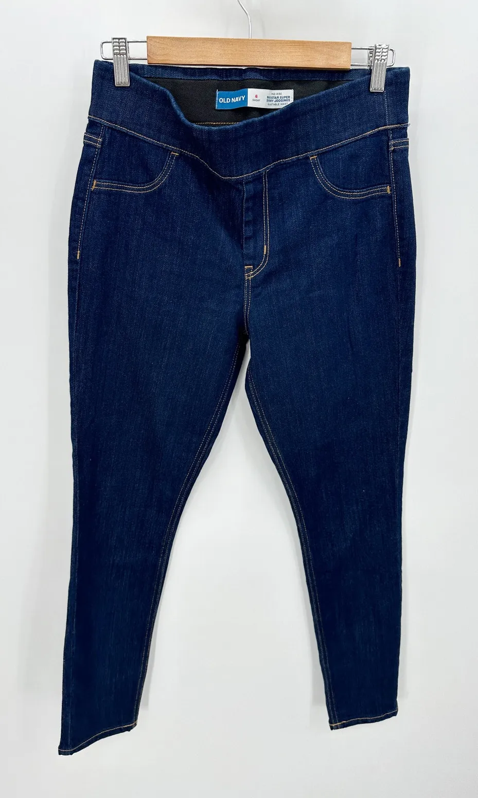 Old Navy Dark Wash Mid-Rise Rockstar Super Skinny Jeggings Denim. Adjustable waist. Size: 6 Short... Show more