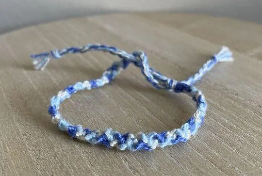 , women, man, child, boy, girl, summer, camp, friendship This woven cotton friendship bracelet is both vibrant and beautiful, making it the perfect accessory for any occasion. Its thread embroidery adds a trendy touch, while the comfortable design makes it ideal for everyday wear. Elevate your style with this casual anklet bracelet - a must-have addition to any wardrobe. Made with 100% cotton. Handmade in a pet free, smoke free home.