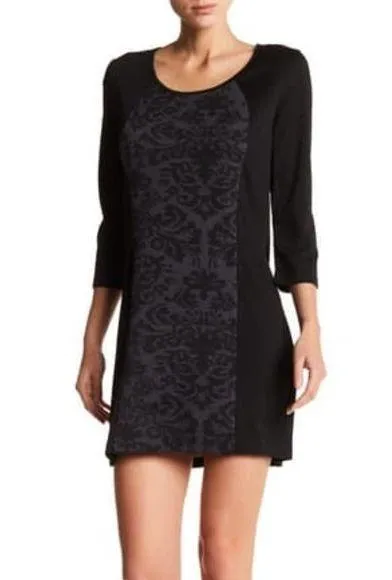 Papillon Damask Print 3/4 Sleeve Sweater Dress Size Medium Color Black & Grey Retail $209 A damask pattern adds chic style to a sweater dress with contrast sleeves. - Scoop neck - 3/4 length sleeves - Center print - Two-tone construction - Banded trim - Approx. 32" length (size S) - Imported Fiber Content 96% polyester, 4% spandex Care Hand wash BRAND NEW WITH TAGS FAST SHIPPING