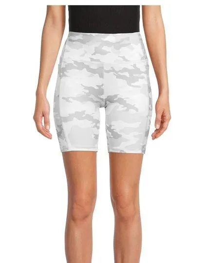 SEE MEASUREMENTS! ATHLETIC WORKS Biker Shorts Size Medium 8-10 Womens Camouflage Pull On Grays New... Show more