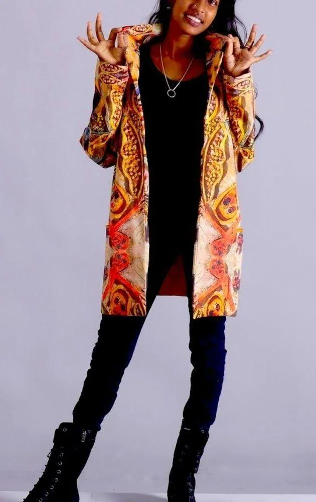 Trench jacket Women's 3/quarter jacket in lined printed cotton Unique jacket in an original ARMAND AVRIL design •Unique jacket in an original design Women's trench jacket 3/quarter jacket in digital printed cotton lined Adjusted to the body, it is elegant and comfortable It is a model that adds grace, cheerfulness and originality to your more classic everyday clothes. Trench coat collar, long sleeves, it closes with 5 matching hand-painted wooden buttons. It goes with several accessories, bag, belts scarves or hats Two front open pockets •100% cotton •digital printing, •Care: Wash gently and separately in cold water, hang in the shade to dry •This jacket is made from a UNIQUE painting by ARMAND AVRIL and is part of the AVRIL/•AKKA collection •Size 40” fits size M and L please check measurements for better descriptions Approximately Measurements Length 31” Bust 20” •Brand New Condition no tags
