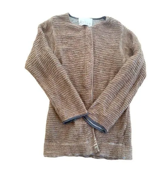 Cozy ribbed knit cardigan sweater jacket in a great neutral color palette. Zips part way up the fron... Show more