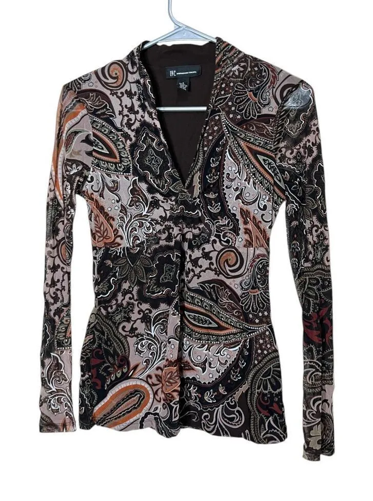 Vintage INC International Concepts Y2K Long Sleeve Paisley Top Size S. Great condition. Sheer sleeve... Show more