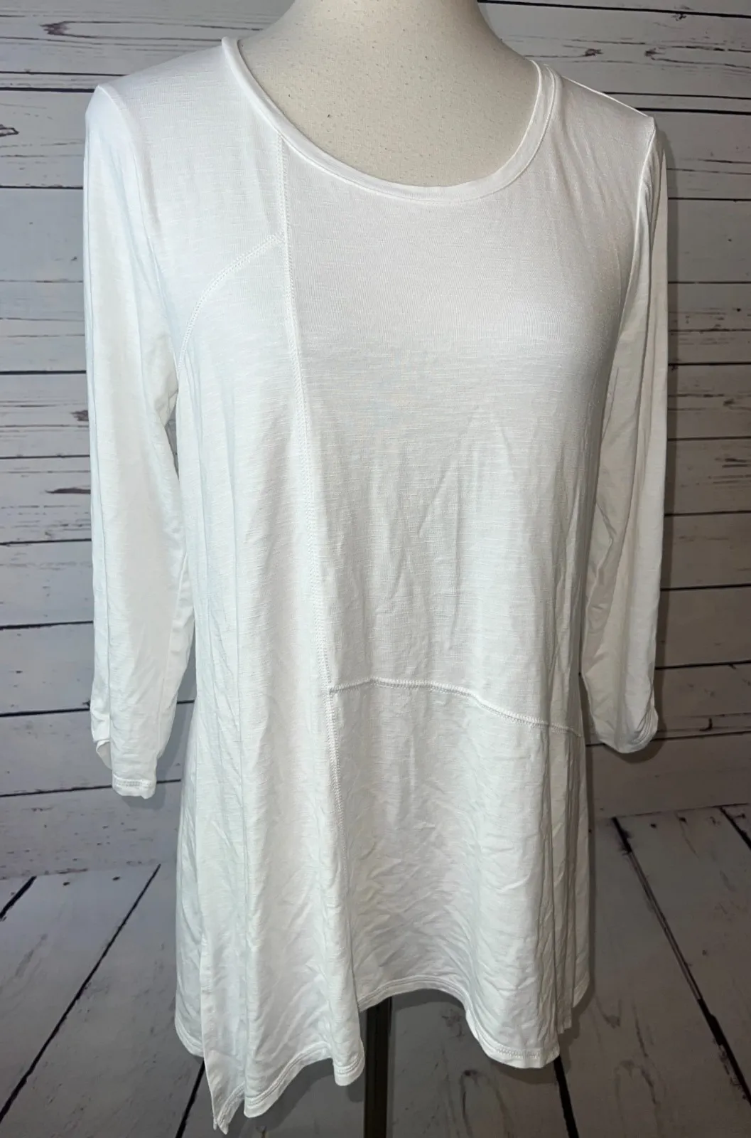 Chicos Zenergy Tunic Top Womens size 0 small Shirt Seam detail Flowy White in color Blouse. Roll tab... Show more
