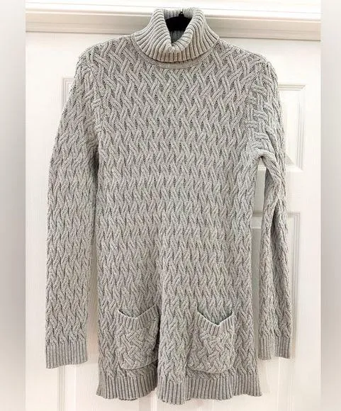 Jeanne Pierre Cable Knit Fisherman Tunic Sweater in gray. Labeled a size large, but it fits like a small, so listing the size according to the actual fit because it won’t fit a large. I wear a small and it fits me well. Great condition. Get cozy in this fisherman turtleneck tunic sweater from Jeanne Pierre. Pair it with leggings or slim pants for a fashionable finish. Product Features Turtleneck Pullover style Two patch pockets; side vents Allover cable knit Slits on bottom sides Hits below hip Cotton Hand wash Imported Fisherman core , fishermancore , cable knit , classic , gorpcore , preppy , coastal , ski lodge , ski trip , fall , winter , neutral , casual , business casual , work , office