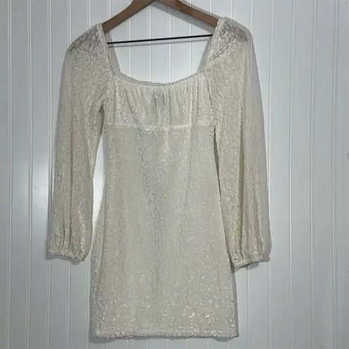 Romantic Princess Polly mini dress featuring textured burnout fabric in ivory/white with hook-and-ey... Show more