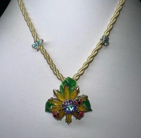 Enameled Flower and Ladybug Pendant on Silk Cord Necklace - $15 (66% Off Retail) - From A Little