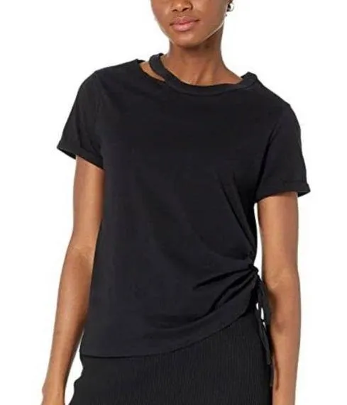 NWT n:Philanthropy Vancouver Short Sleeve Ruched Side T-Shirt with neck cut out detailing Size: XS Color: Black Material: 100% Cotton Chest: 17 in Length:22.5 in Measurements are proximate laying down flat