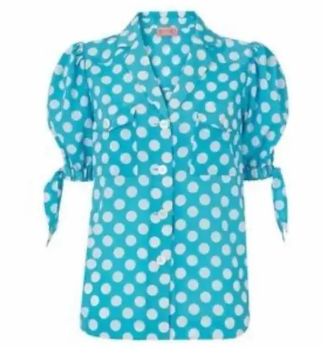 Kitri Ramona Polka Dot Boxy Blouse Top Short Sleeve Blue White Size US 4 - $49 New With Tags - From Luchie