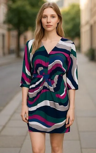 92% Polyester, 8% Spandex Imported Pull On closure Dry Clean Only Soft jersey fabric Geometric print... Show more