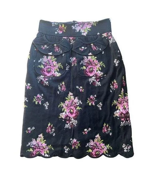 Anthropologie Moth Agora & Odeon Scalloped Sweater Skirt Black Floral Size 4 Black pencil skirt with... Show more