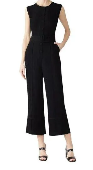 Derek Lam 10 Crosby Womens Size 2 Button Front Cropped Jumpsuit Black Crepe Wide Leg Cut Out Back M... Show more
