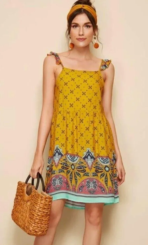Shein burnt yellow patterned dress.