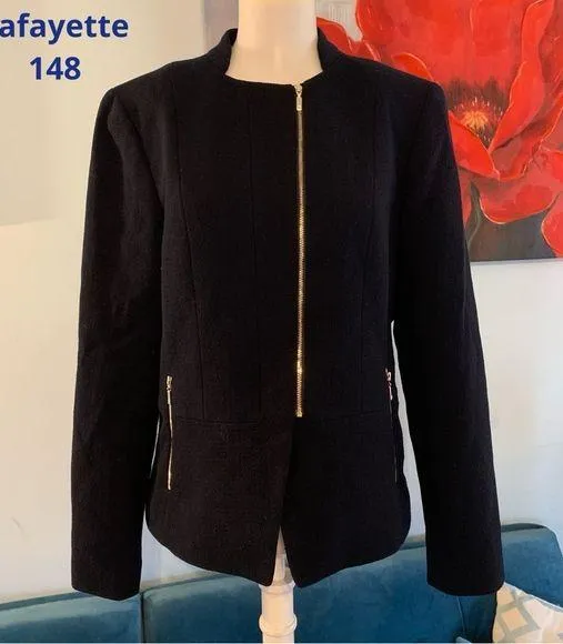Lafayette 148 New York Womens Wool Split Hem Blazer Jacket Blue Size 8 M - $35 - From T